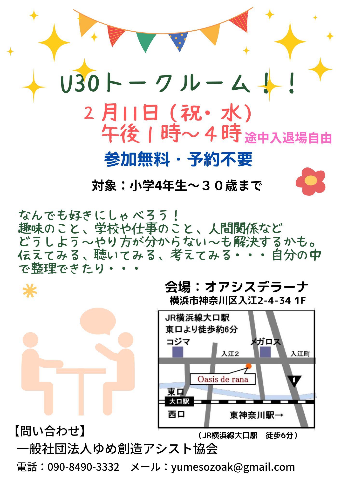 U30トークルーム開催:2月11日(祝・水)13時~16時